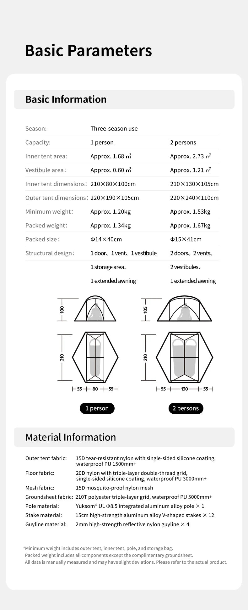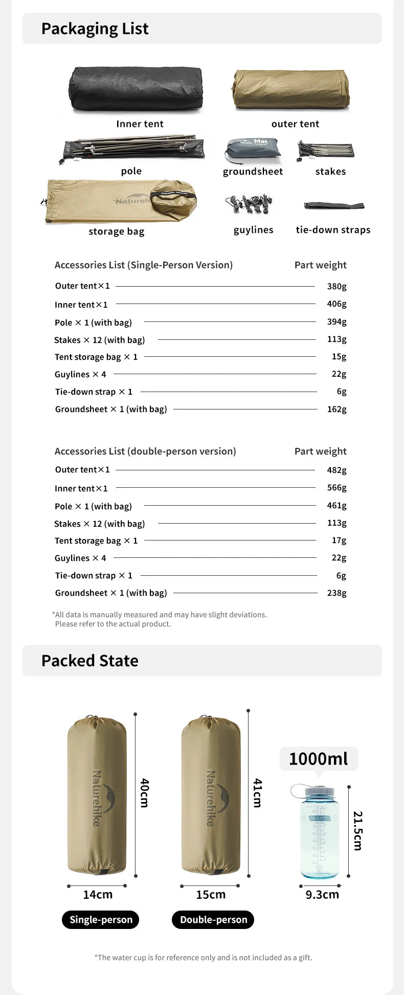 Naturehike Mongar UL 2 – Ultralight 2-Person Waterproof Backpacking Tent